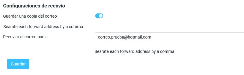 En el caso de que ya no quieras utilizar el reenvío de correo, solo tienes que desactivar la opción de Guardar una copia del correo y seleccionar en el botón de Guardar.