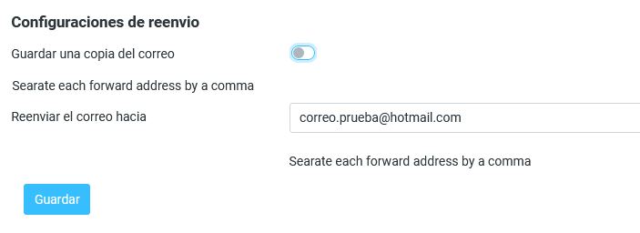 Luego que el administrador haya realizado el cambio, ahora se va a proceder a configurar el reenvío de correo.