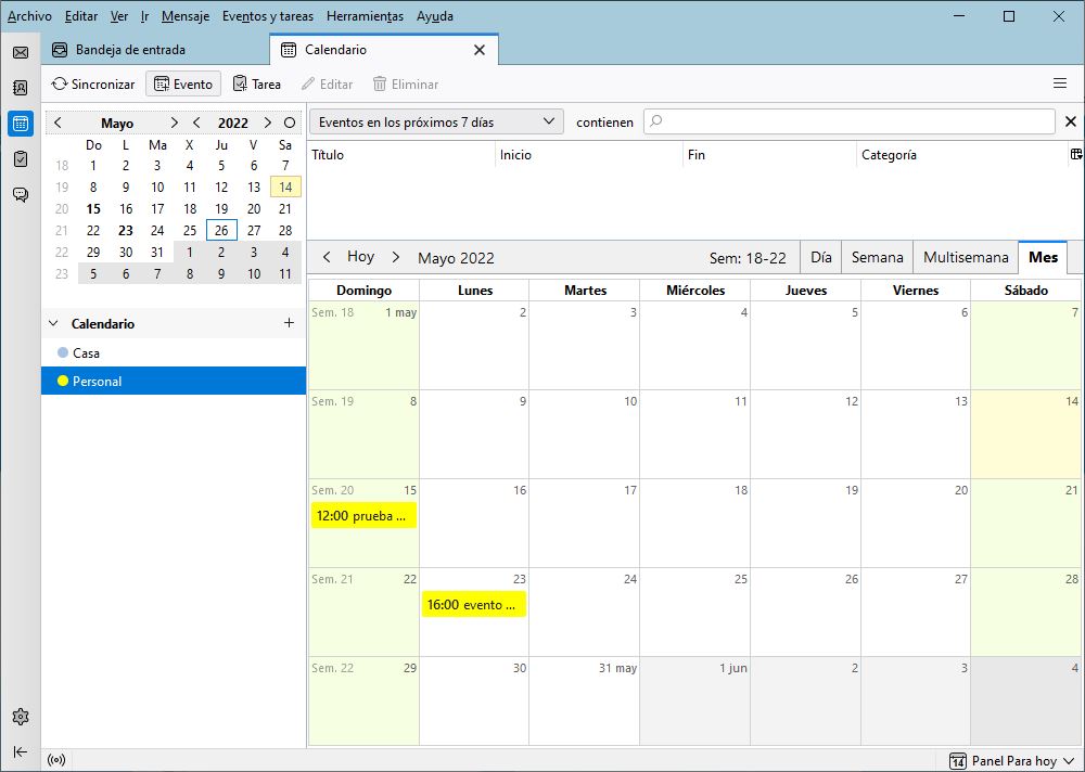 Una vez terminado la configuración, vamos a poder ver nuestro calendario sincronizado con todas las tareas creadas en Nextcloud.