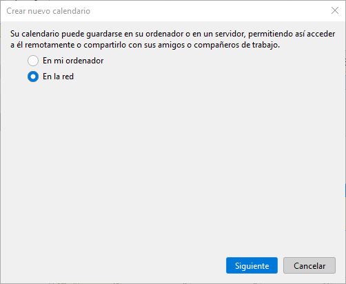 Esto a su vez mostrará una nueva ventana para crear un nuevo calendario en donde tendremos que seleccionar la opción En la red.