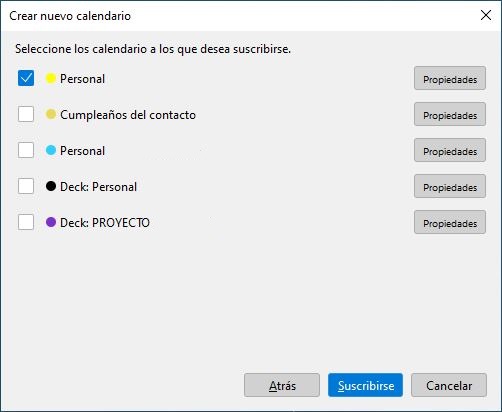En esta ventana vamos a escoger los calendarios a los que queremos suscribirnos o sincronizar, luego escoger seleccionamos el botón de suscribirse.