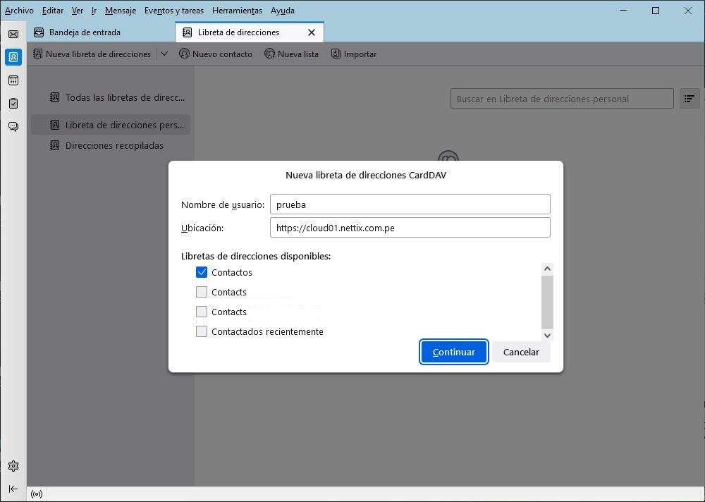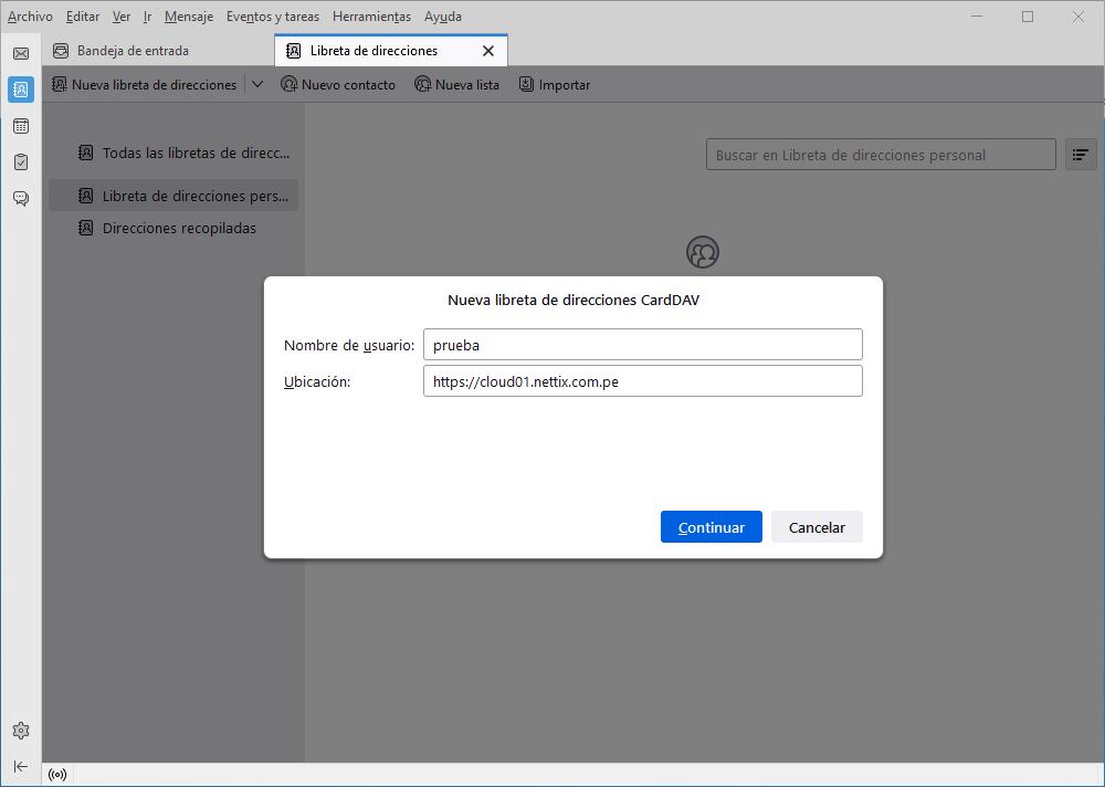 PASOS PARA SINCRONIZAR LOS CONTACTOS DE NEXTCLOUD EN THUNDERBIRD